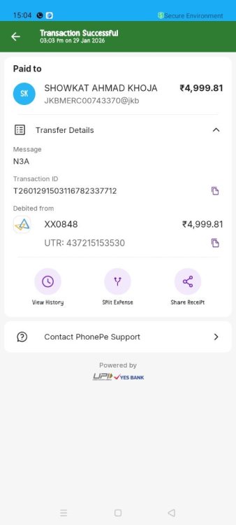 Username : Royal2809 User id:71653609 Registered Email: [email protected] Issue Type: Deposit credited 0 INR but amount deducted Order ID: F-1855643118549083079 Transaction ID (Txid): P_260...7nEAE Order Amount: 5000 INR Credited Amount: 0 INR Status: Processing (from long time) Date & Time: 29/01/2026 at 03:03:02 PM Problem Description: I made a deposit of 5000 INR on BC.Game. The order status is still showing “Processing”, but the credited amount is 0 INR. The amount has been deducted successfully from my side, however it has not been credited to my BC.Game wallet. This is causing financial loss and inconvenience to me. What I Want: I request BC.Game team to either: 1) Credit the full amount of 5000 INR to my account, OR 2) Refund the deducted amount immediately. Proof: I have attached screenshots of the transaction details, order status, and payment confirmation.