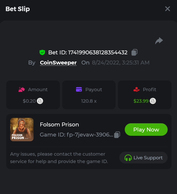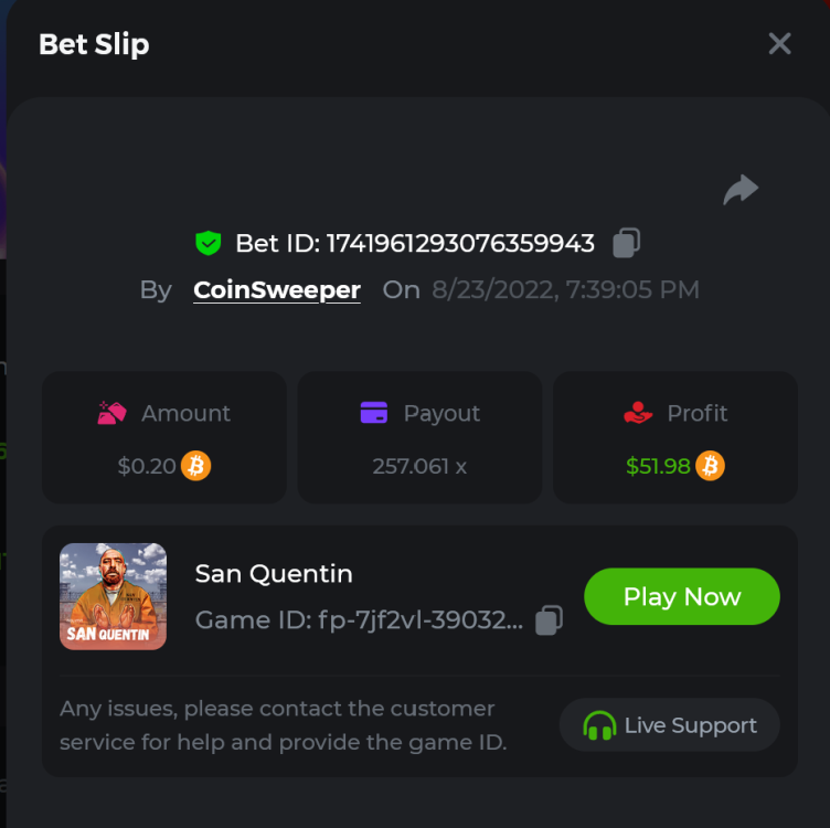 5. https://bc.game/#/sd/10UF8OAHLT0XLF - 375.0253x https://bc.game/#/sd/10UF45UTXGV6DV - 137x https://bc.game/#/sd/10UF4L9PN0PPUB - 115x https://bc.game/#/sd/10UF5LQ2USBBBN - 110x https://bc.game/#/sd/10UF9BZOYZUTCJ - 523.9 x https://bc.game/#/sd/10UFAK7HTDUWPF - 171.8x https://bc.game/#/sd/10UFBOWUNK3DAR - 95.4x https://bc.game/#/sd/10UF7SLOKLRTOZ - 50x - Bounty https://bc.game/#/sd/10UFBXW23LF9JN - 116.5x https://bc.game/#/sd/10UFCM2WB6JWUR - 190x https://bc.game/#/sd/10UFD5FS7F0QVN - 136.85 https://bc.game/#/sd/10UFDPDK1Q83KJ - 150x https://bc.game/#/sd/10UFE79T53LGR7 - 302.7x