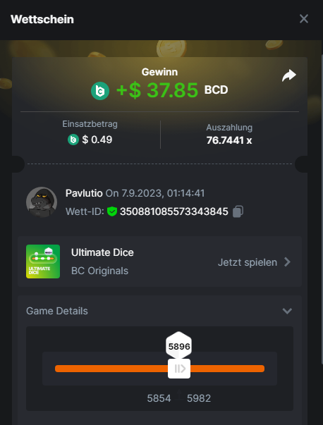 Classic Dice x10 https://bc.game/#/sd/11VLHRJG9EDT1F Run away Zombies 10x https://bc.game/#/sd/11VLIIWJAYVR4R Baccarat 9x https://bc.game/#/sd/11VLJ1UIYLB03N John Wild 20x https://bc.game/#/sd/11VLJCRRPWKMO7 Twist 15.5x https://bc.game/#/sd/11VLJVMYZJP89N Hello Easter 20X https://bc.game/#/sd/11VLKHQJX5UFX7 Lucky Easter 30X Red Tiger https://bc.game/#/sd/11VLKVPZ7TD0S7 Plinko 76x https://bc.game/#/sd/11VLNHKXB2B94Z Keno 50X https://bc.game/#/sd/11VLZXXWSETGEB Ring of Fortune 99X https://bc.game/#/sd/11VM109IJOCIBR Keno 259x https://bc.game/#/sd/11VMCHB3928KRF Limbo 500x https://bc.game/#/sd/11VMCSY8LKEMYV Roulette Singe 36x https://bc.game/#/sd/11VSMS95Z2L4P7 Wheel 29.7x https://bc.game/#/sd/11VSNGSS4B8GRR Bonus Bunnies 100x https://bc.game/#/sd/11VSP85GLT76DN Easter Heist 90x https://bc.game/#/sd/11VSSCFCBR49R3 Crash 10x https://bc.game/#/sd/11W08C2OE5G03B Black Jack Player 3!!! Statistik do not work correkt https://bc.game/#/sd/11W0B3OVLQ3INF