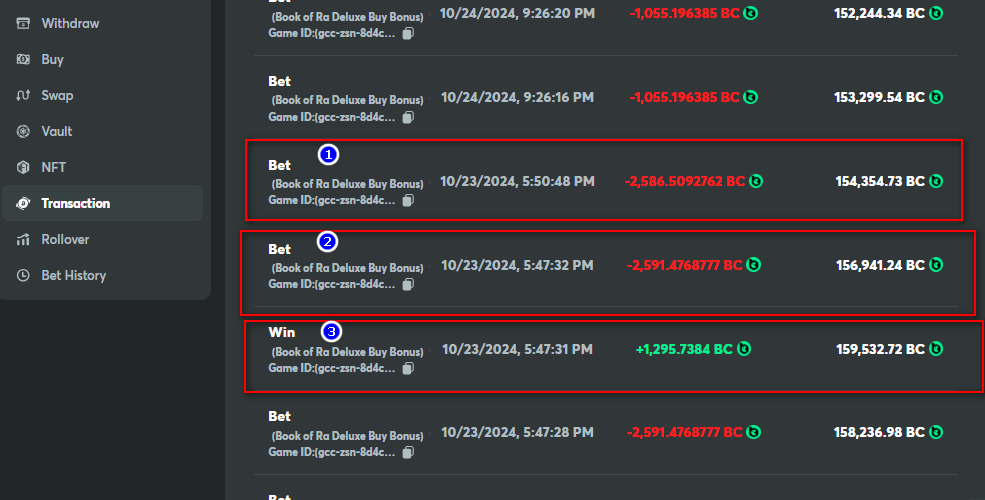 While playing with BC Game tokens game Book of ra delux buy bonus, I won the bonus game. During the bonus game, game glitched and showed black screen, I reloaded the page and the game continued on normally at the same place it stopped. Once the bonus game has been completed, the won amount was credited but deducted immediately.