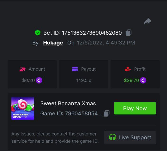 Book of Elves - 278.99x https://bc.game/#/sd/10ZW5ZYES0LGK3 Book of Xmas - 40.00x https://bc.game/#/sd/10ZWB4K9F62Y37 Wild Santa II - 36.00x https://bc.game/#/sd/10ZWBLXSP60MC3 Santa's Wild Night - 12.00x https://bc.game/#/sd/10ZWA1AREBUYVN -