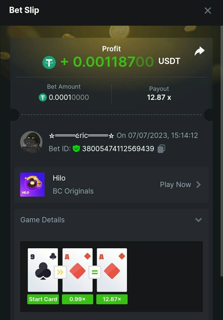 2. ⚜✦ چالش ‌ویژه ‌‌دیسڪورد ✦⚜ ➦#36_special_challenge ➦#forum چــالش : ڪسب ضریب 12.87 ایڪس گرفتن دو ڪارت آس پیاپی | A-A در بازی داخلے •✦• هایـــــلو •✦• •✦• HiLo •✦• و اشتراڪ آن بہ صورت ریپلای در زیر این پست ارسال لینڪ بت بہ همراه شات ضریب الزامے می باشـــد ┈━━━═ ✛ ❖ ✛ ═━━━┈ شرایـــط چـــالش: حداقل پایہ شرط :مینیموم تمامے ارزها جی بی مجاز نیست حـداقل لول ڪاربر: 4 / چہار ضریب قابل اشتراڪ: 12.87 ایڪس رد ڪردن ڪارت مجاز است جوایز نفر اول .................... 9 دلار نفر دوم .................... 4 دلار نفر سوم .................... 3 دلار 🎖 نفر چہارم تا دوازدهم .... 1 دلار ┈━━━═ ✛ ❖ ✛ ═━━━┈ برای عضویت در ڪانال چالش ها و اطلاع از جزئیات و شرڪت در چـــالش های بخش فارسی بہ لینڪ مراجعہ ڪنیـــد لیـنڪ‌ ڪانال ‌چالـــش ها زمان پایان چالش 23:59 امشب نمونه ارسالے https://bc.game/#/sd/11DC7J30C4R8CZ : لینڪ بت لیست برنده های چالش ویژه ➦ #36_special_challenge ➦ #forum ╭──────────╮ .|...🇭 🇮 🇱 🇴....| ╰──────────╯ •✦• هایـــــلو •✦• •✦• HiLo •✦• List of the winners ▂▂▂ ▂ ▂▨⛤▨▂ ▂ ▂▂▂ نفر اول برنده 9 دلار BarsamBet 12.3270425 USD Uid: 2135926 https://bc.game/#/sd/11DCDN8AD7PX5F ▂▂▂ ▂ ▂▨⛤▨▂ ▂ ▂▂▂ نفر دوم برنده 4 دلار Reyhanee 4.760166 USD Uid: 2691204 https://bc.game/#/sd/11DCP4F1U2JMDV ▂▂▂ ▂ ▂▨⛤▨▂ ▂ ▂▂▂ نفر سوم برنده 3 دلار smohammad68 1.17559838 USD Uid: 259211 https://bc.game/#/sd/11DCEI5ZQS24GJ ▂▂▂ ▂ ▂▨⛤▨▂ ▂ ▂▂▂ نفر چهارم برنده 1 دلار Parvizgariby 0.63595894 USD Uid: 6230725 https://bc.game/#/sd/11DCJX0B0JC9OZ ▂▂▂ ▂ ▂▨⛤▨▂ ▂ ▂▂▂ نفر پنجم برنده 1 دلار Aghajaniii 0.5935 USD Uid: 5354860 https://bc.game/#/sd/11DCVQLQZSZ9CJ ▂▂▂ ▂ ▂▨⛤▨▂ ▂ ▂▂▂ نفر ششم برنده 1 دلار YONIVER 0.25760612 USD Uid: 2223873 https://bc.game/#/sd/11DCZBH1TSLBTF ▂▂▂ ▂ ▂▨⛤▨▂ ▂ ▂▂▂ موفق و پرسود باشید ❤