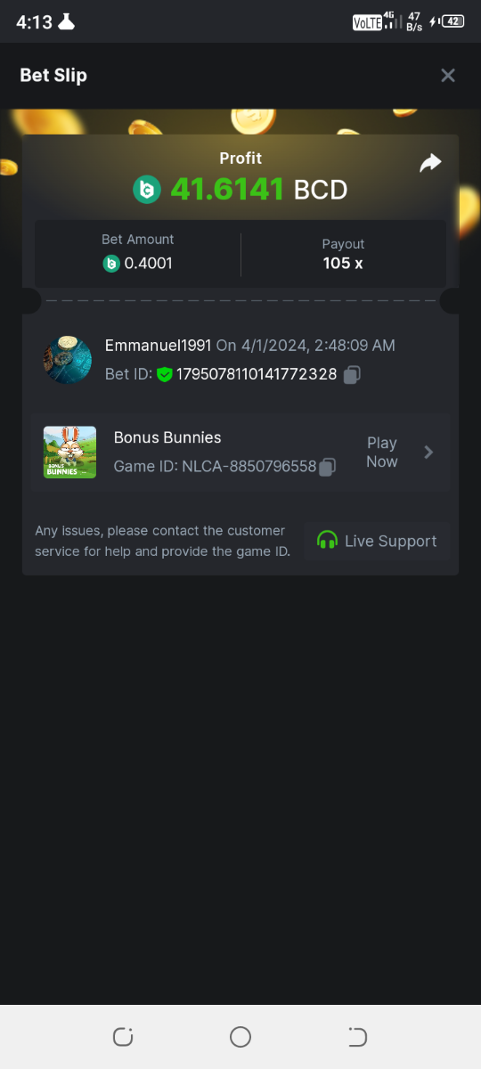 Emmanuel1991 replied to BCGame_Maxim's topic in VIP Challenges