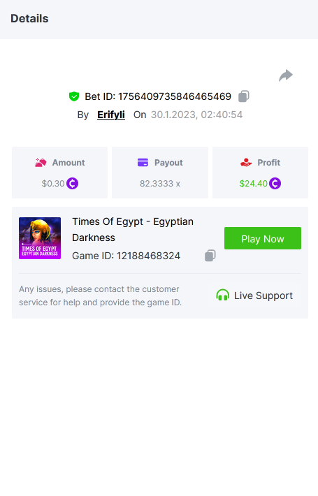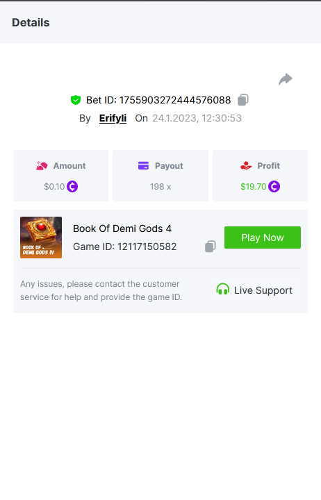 8. Also Bounty (3 Aces) https://bc.game/#/sd/11173KUMVQT8GJ