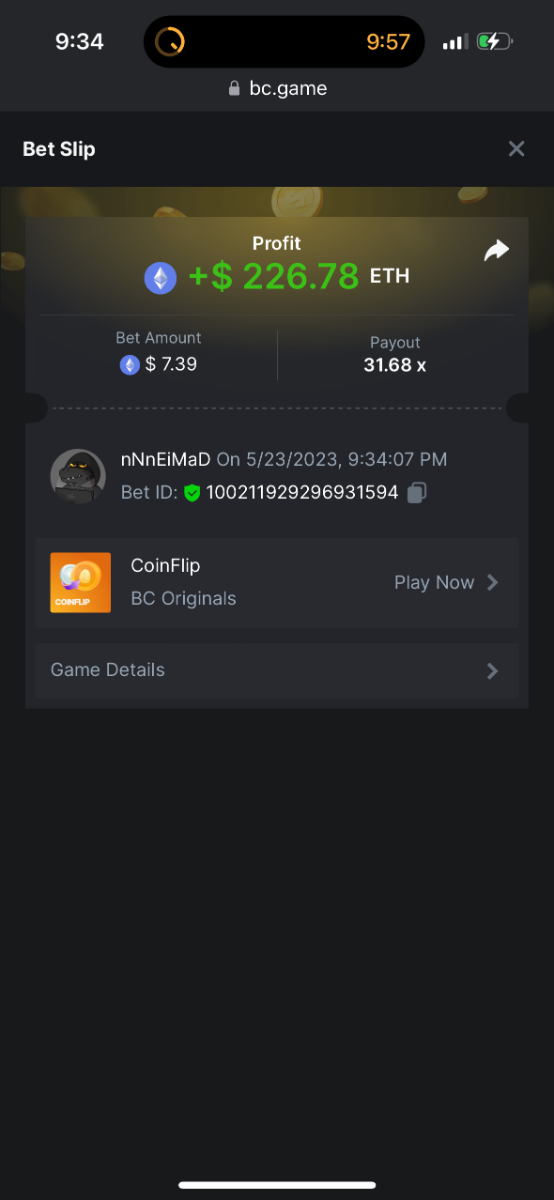 11. Coin Flip Challenge https://bc.game/#/sd/11AA8EL0RVU4UR $7.39 bet 31.68x https://bc.game/#/sd/11AA8HB8T5G5QR $7.39 bet 63.36x