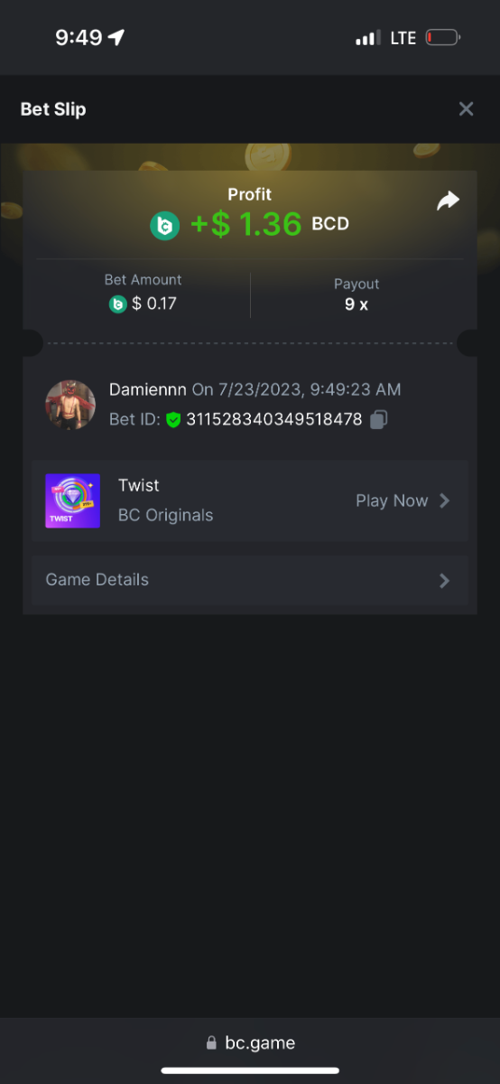 5. Limbo challenge ***$0.14 bet with a 14x - https://bc.game/#/sd/11SOJ7WU1USC5V