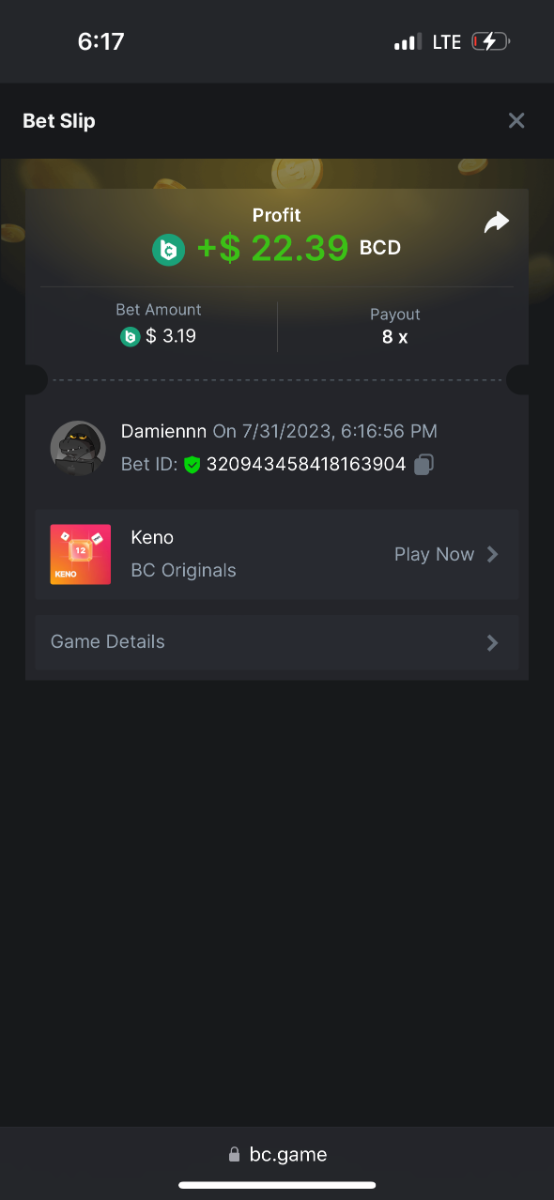 9. Keno challenge https://bc.game/#/sd/11F0UVE2MY8K5V $0.79 bet — 5.1x https://bc.game/#/sd/11F1HMEQUWQHAR $25.60 bet — 7x https://bc.game/#/sd/11F0VBPU1SVV2R $3.19 bet — 8x https://bc.game/#/sd/11F1H781RHHD77 $6.40 bet —11x —17x — 26x —30x — 56x —63x — 81.5x —100x —180x —250x —270x https://bc.game/#/sd/11F0VYUEH4RV2R $3.20 bet — 350x —450x —500x —600x —710x —800x —900x —1000x