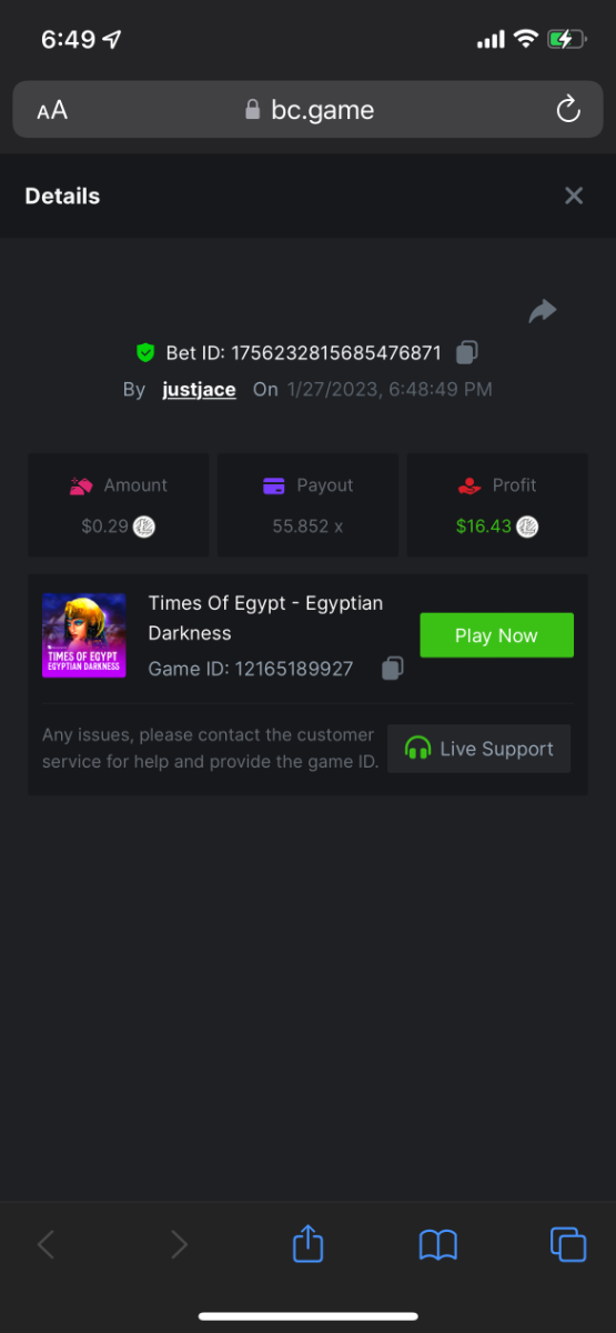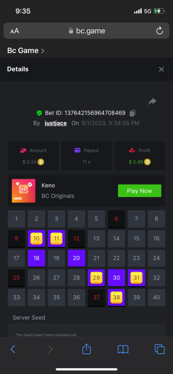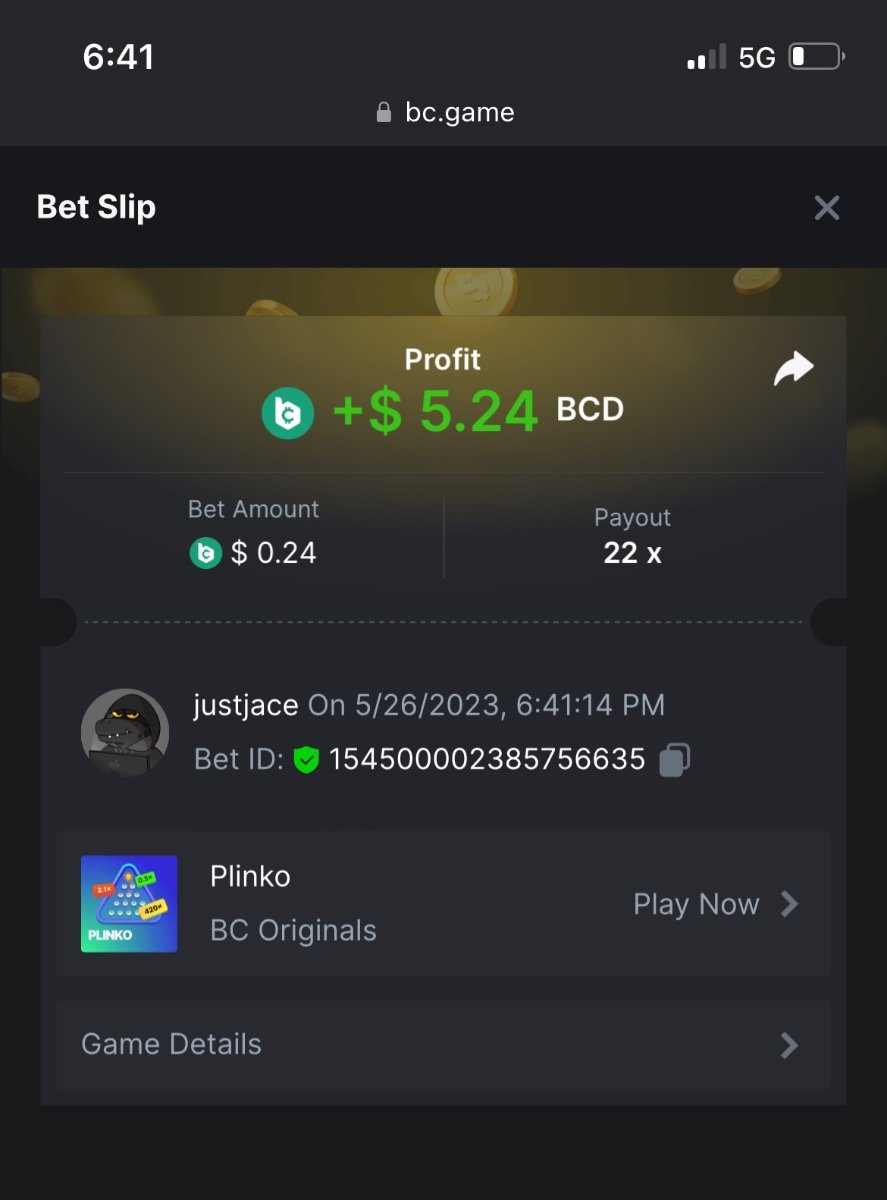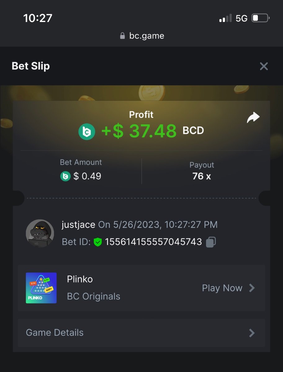 5.1x : https://bc.game/#/sd/1138ZN41M803RN 11x: https://bc.game/#/sd/1138ZWV6Q4I0IB 100x: https://bc.game/#/sd/113DU4H2V30MQB 180x: https://bc.game/#/sd/113DUHFTXSW4K3 63x: https://bc.game/#/sd/113E3M85OJT1XV -