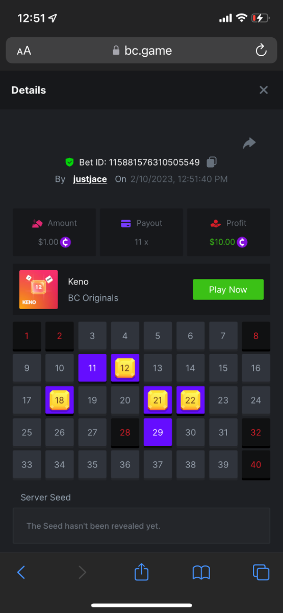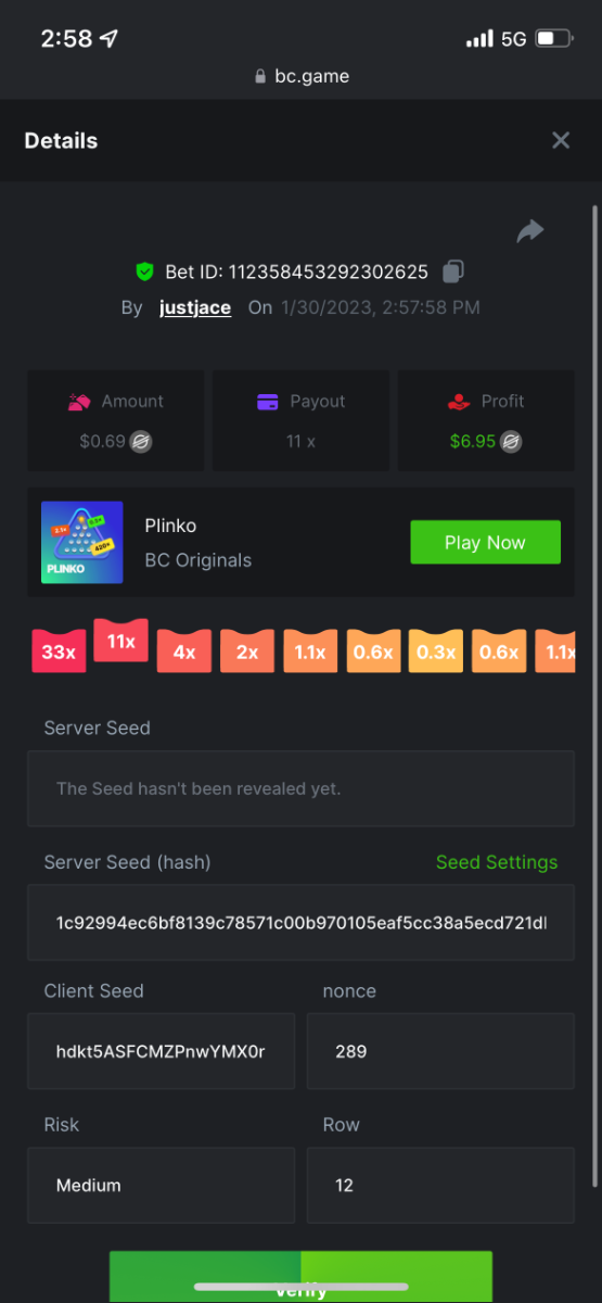 5.1x: https://bc.game/#/sd/118ROTNAR84R9V 8x: https://bc.game/#/sd/118RQVPP8BQYAB 11x: https://bc.game/#/sd/118RPW4RVZQVPV 56x: https://bc.game/#/sd/118RRFI8VER3TF 81.5x: https://bc.game/#/sd/118RS6P6T5KLJN 100x: https://bc.game/#/sd/118U0YISWJW5CJ