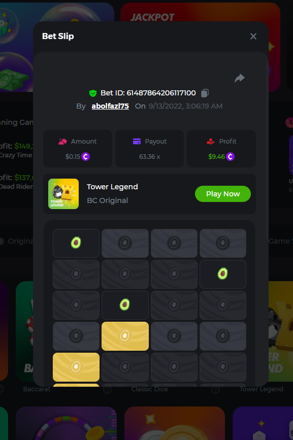 Event Team Niobium Posted September 12, 2022 Event Team Share Posted September 12, 2022 $2.5k Prestige Tower Legend Challenge #46 ♜ Starts: 12, September 8:30pm GMTEnds: 19, September 8:30pm GMT Hello VIPs! Our weekly event is back and better than ever, so get ready to play some Tower Legend! The Top 10 players of the week will receive a major reward, and other participants will also get rewarded for their efforts! But that's not all, anyone who completes the extra bounty will receive an equal share of the $500 prize pool. Come join us, have some fun, and maybe you'll end up at the Top! — More details are given further on. What's the Challenge? Win the highest multiplier you can on BC.Game's in-house game, Tower Legend. (Any difficulty is valid). If there is a tie, the player with the higher average bet amount (in USD) shall be the winner. If there is a tie in the amount and payout, the one who posted or edited his post first will be considered in the Ranking. Minimum VIP There's no minimum VIP level Minimum Payouts Minimum payout to qualify is 15x Minimum Bet Size $0.15 USD equivalent Eligible Coins All cryptocurrencies are eligible (excepting JB) Available Prizes 1st Place....... $500 2nd Place..... $300 3rd Place...... $200 4th Place......$100 5th Place......$50 6th-10th.........$30 All other participants.........$700 Bounty Prize...$500, equal share. EXTRA BOUNTY Post a winning bet with 253.44x multiplier or above and receive an equal share of the $500 prize pool! Original rules apply with all minimum requirements. How to Enter To enter, copy the link of the bet you'd like to submit. Once you've copied it, paste it as a reply to this thread like so: Link: https://bc.game/sd/?sd=10SURLKVEOZRPV In the same post, upload a screenshot of your win by clicking the game ID WITH VIEW IN USD mode ENABLED (accessible at the bottom of dropdown menu for your wallet up top. This way, we can ensure that your bet indeed met the minimum requirement at the time of placing it: Link: https://bc.game/sd/?sd=10SURLKVEOZRPV Please combine all of your hits together in a SINGLE post. Edit your existing post for additional hits, don't create a new post. Each eligible entry must have the Bet Slip URL, failure to include it will disqualify participation in the event. Bet Slip image is not mandatory. Bets must be posted within 24 hours of placing bet in order to keep things fair for everyone. Bets must be made during the specified time window stated above. This thread will lock automatically when the time period is over. One (1) entry per household. Anyone found attempting to win multiple prizes will be disqualified from this challenge as well as all future challenges. Failure to follow instructions will result in your submission being null and void. By entering this challenge, you acknowledge that BC.Game has the final decision on results and placement. Payouts will be made within 72 hours of challenge completion, please be patient, we promise you that we haven't forgotten. We check and double check to make sure the rightful winners receive their prize. Prizes will be paid out in BCD. Good luck everyone! Link to comment Share on other sites More sharing options...