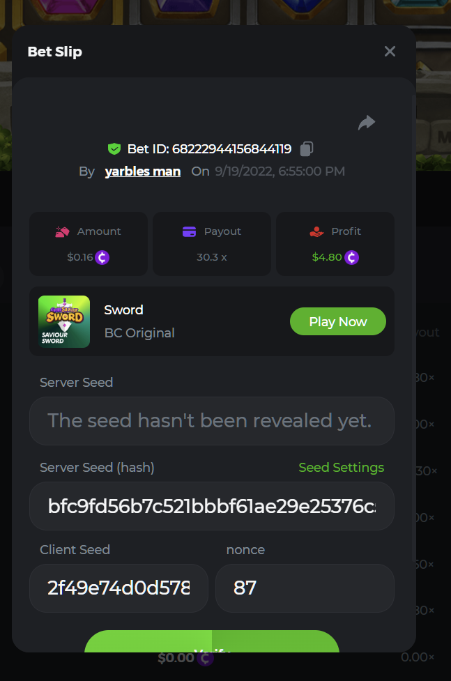 Event Team Niobium Posted September 19, 2022 Event Team Share Posted September 19, 2022 (edited) $2.5k Prestige Savior Sword Challenge #47 Starts: 19, September 7:30pm GMTEnds: 26, September 7:30pm GMT Ladies and gentlemen! Welcome back to our new weekly event with a prize pool of $2,500! The game selected is our in-house Sword slot, the Top 10 will take home a major prize and the remaining $700 will be split between all other participants! Happily, the prizes don't end there, anyone who completes the extra bounty will receive an equal share of the $500. By the power of the Saviour Sword, we can overcome all obstacles! — (details further down) What's the Challenge? Win the highest multiplier you can on BC.Game's in-house game, Savior Sword. If there is a tie, the player with the higher average bet amount (in USD) shall be the winner. If there is a tie in the amount and payout, the one who posted or edited his post first will be considered in the Ranking. Minimum VIP There's no minimum VIP level Minimum Payouts Minimum payout to qualify is 15x Minimum Bet Size $0.10 USD equivalent Eligible Coins All cryptocurrencies are eligible (excepting JB) Available Prizes 1st Place....... $500 2nd Place..... $300 3rd Place...... $200 4th Place......$100 5th Place......$50 6th-10th.........$30 All other participants.........$700 Bounty Prize...$500, equal share. EXTRA BOUNTY Share a winning bet that shows exactly 50x multiplier and receive an equal share of 20% of the prize pool! If nobody gets exactly 50x the player/s closest to 50x will win this bounty! Original rules apply with all minimum requirements. How to Enter To enter, copy the link of the bet you'd like to submit. Once you've copied it, paste it as a reply to this thread like so: Link: https://bc.game/sd/?sd=10TC1DB7ZAN8R7 In the same post, upload a screenshot of your win by clicking the game ID WITH VIEW IN USD mode ENABLED (accessible at the bottom of dropdown menu for your wallet up top. This way, we can ensure that your bet indeed met the minimum requirement at the time of placing it: Link: https://bc.game/sd/?sd=10TC1DB7ZAN8R7 Please combine all of your hits together in a SINGLE post. Edit your existing post for additional hits, don't create a new post. Each eligible entry must have the Bet Slip URL, failure to include it will disqualify participation in the event. Bet Slip image is not mandatory. Bets must be posted within 24 hours of placing bet in order to keep things fair for everyone. Bets must be made during the specified time window stated above. This thread will lock automatically when the time period is over. One (1) entry per household. Anyone found attempting to win multiple prizes will be disqualified from this challenge as well as all future challenges. Failure to follow instructions will result in your submission being null and void. By entering this challenge, you acknowledge that BC.Game has the final decision on results and placement. Payouts will be made within 72 hours of challenge completion, please be patient, we promise you that we haven't forgotten. We check and double check to make sure the rightful winners receive their prize. Prizes will be paid out in BCD. Good luck everyone! Edited September 19, 2022 by Niobium 1 Link to comment Share on other sites More sharing options...
