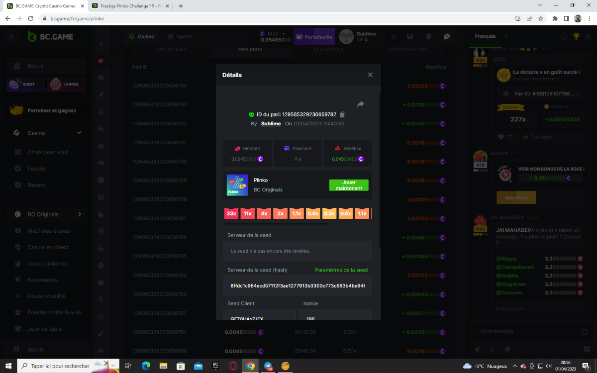 Member AkSyEn03 Posted March 30, 2023 Member Share Posted March 30, 2023 Défi Prestige Plinko de 48$ Début : 30 MARS à 22h45 Fin 4 AVRIL 15h30 Hé, hé, les VIP ! Regardez vers le ciel, il pleut des météores, et ils se rapprochent rapidement ! Frappez le plus grand nombre de paiements uniques sur Plinko pour vous sauver et rejoignez BCRocket pour explorer une nouvelle planète inconnue. La cagnotte est de 48 $ Sois prêt! Continuez à lire plus d'informations ci-dessous pour découvrir les règles de ce défi et comment vous pouvez remporter le premier prix ! Quel est le Défi ? Complétez autant des 17 paiements suivants sur Plinko. Doit être un multiplicateur exact. | 11x | 13x | 22x | 29x | 33x | 37x | 43x | 56x | 76x | 83x | 110x | 120x | 170x | 260x | 420x | 620x | 1000x | Chaque paiement que vous touchez ci-dessus compte pour 1 point (maximum 1 point pour chaque paiement). S'il y a égalité, le joueur avec le montant de pari moyen le plus élevé (en USD) sera le gagnant. S'il y a égalité, le joueur avec le montant de pari moyen le plus élevé (en USD) sera le gagnant. S'il y a égalité dans le montant et le paiement, celui qui a publié ou modifié sa publication en premier sera considéré dans le classement. Comment entrer : Il n'y a pas de niveau VIP minimum Au moins 3 paiements pour vous qualifier Taille de mise minimale 0,0045 USD Pièces éligibles : Toutes les crypto-monnaies sont éligibles (sauf JB) price is 1st.............$15 2nd...........$10 3rd...........$5 4th-13th...$2 Rejoignez et faites un basebet d'au moins 0,15, vous pouvez rejoindre 2 événements en même temps - événement régional : Conditions générales : Veuillez combiner tous vos résultats dans un SEUL message. Modifiez votre publication existante pour des résultats supplémentaires, ne créez pas de nouvelle publication. Chaque inscription éligible doit avoir l'URL du bordereau de pari. Si vous ne l'incluez pas, la participation à l'événement sera disqualifiée. L'image du bulletin de pari n'est pas obligatoire. Les paris doivent être publiés dans les 24 heures suivant le placement du pari afin que les choses restent équitables pour tout le monde. Les paris doivent être faits pendant la fenêtre de temps spécifiée ci-dessus. Ce fil se verrouillera automatiquement lorsque la période de temps sera terminée. Une (1) participation par foyer. Toute personne surprise en train de tenter de gagner plusieurs prix sera disqualifiée de ce défi ainsi que de tous les défis futurs. Le non-respect des instructions entraînera la nullité de votre soumission. En participant à ce défi, vous reconnaissez que BC.Game a la décision finale sur les résultats et le placement. Les paiements seront effectués dans les 72 heures suivant la fin du défi, soyez patient, nous vous promettons que nous n'avons pas oublié. Nous vérifions et revérifions pour nous assurer que les gagnants légitimes reçoivent leur prix. Les prix seront payés en BCD. BONNE CHANCE À TOUS Link to comment Share on other sites More sharing options...