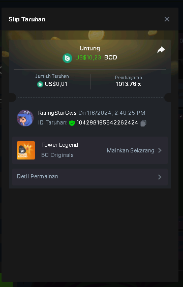 Moderator Giandreas Posted January 6, 2024 Moderator Share Posted January 6, 2024 Read Carefully Before Start To Hunt Forum Daily Challenges #471Hunt : tower legend Win the highest pay out Min Payout : 13x Min Level 10 ️Duration Starting : Now End time : 23.59 UTC Time How to Join? Make screenshot + paste your bet link + UID or Profile link Any coin, with min bet 0.01 USD is allowed (jb/bb/bcl not allowed) Reward Prizes 1st Place.....$7 BCD 2nd Place.....$5 BCD 3rd Place.....$4 BCD 4th Place.....$3 BCD 5th Place.....$2 BCD 🏵 Winners will be announcing next day after Roll Point! Link to comment Share on other sites More sharing options...