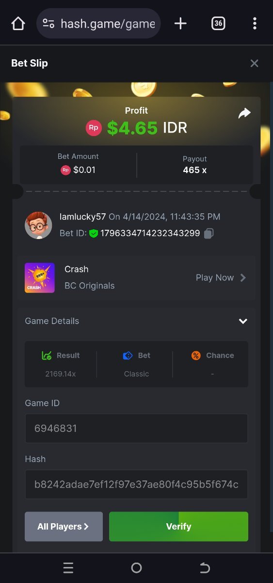 Iamlucky57 Posted April 14, 2024 Share Posted April 14, 2024 13 hours ago, Kikikom said: Read Carefully Before Start To Hunt Forum Daily Challenges #570Hunt : Crash Win the highest pay out Min Payout : 20x Min Level 10 ️Duration Starting : Now End time : 23.59 UTC Time How to Join? Make screenshot + paste your bet link + UID or Profile link Any coin, with min bet 0.01 USD is allowed (jb/bb/bcl not allowed) Reward Prizes 1st Place.....$7 BCD 2nd Place.....$5 BCD 3rd Place.....$4 BCD 4th Place.....$3 BCD 5th Place.....$2 BCD 🏵 Winners will be announcing next day after Roll Point! https://hash.game/#/sd/11WRRBJTBAD6YN Uid: 5655852 Link to comment Share on other sites More sharing options...