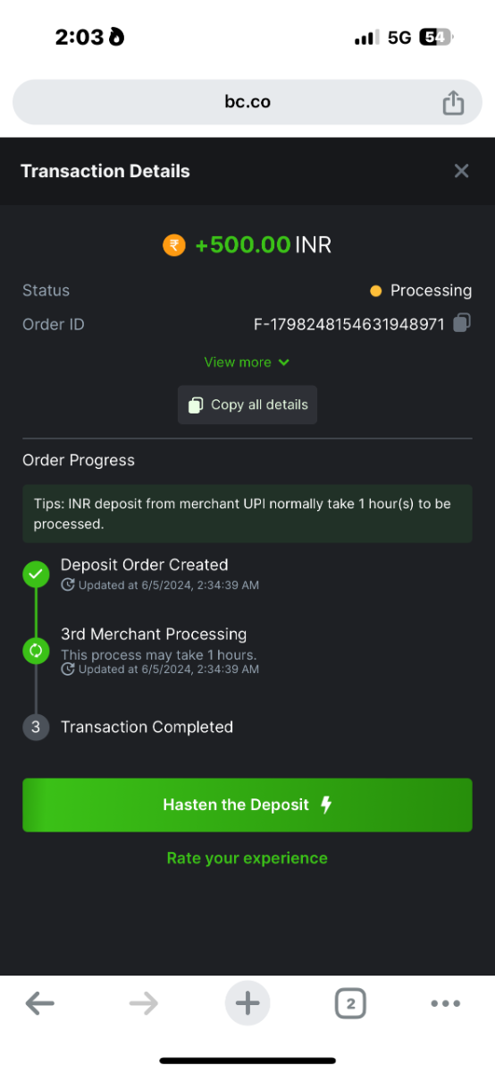 26824887 Posted May 7, 2024 Share Posted May 7, 2024 I am playing crash game but my bet is automatically showing limbo game. This is a big betrayal to me My Wallet fly without playing crash bc game orginal amount of 120.11 inr dated 05/06/2024 time 09:00:00 pm My wallet fly without playing crash bc game orginal amount of 216.34 inr dated 05/07/2024 time 05:08:03 pm This big scam with me without playing game please return my wallet payment I think this is technical problem in BC game app Link to comment Share on other sites More sharing options...