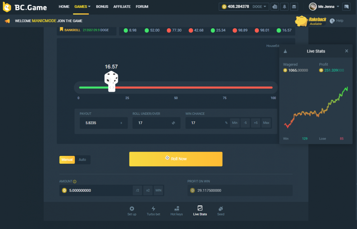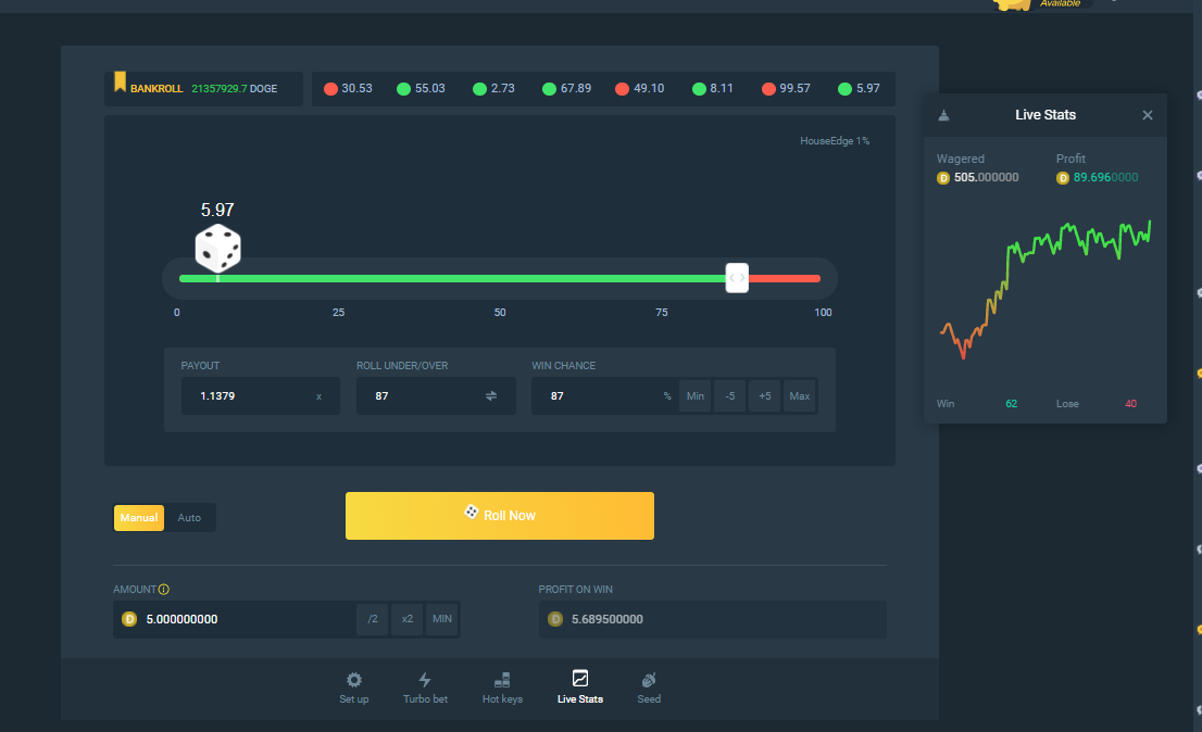 Hi guys so this strategy is easy you just need a small fixed bet for me its 5 doge.