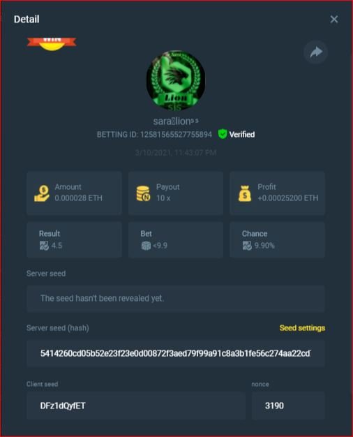 Win 2 or more consecutive bets with 10x (win chance 9.9%) on Classic Dice.