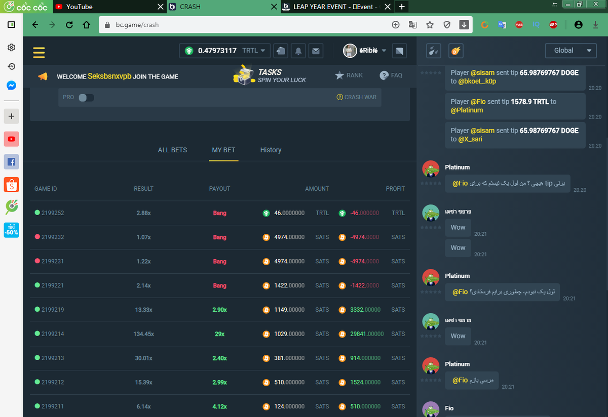 Kaito 😴 Posted March 1, 2020 Share Posted March 1, 2020 • LEAP YEAR EVENT • February 29, 2020 GAME: CRASH How to play: (Requirements, Game settings) ✓Hit 29x (24 HOURS ONLY) Minimum bets: NO MINIMUM BET Reward: 20 XLM (STELLAR) How to Enter: Reply to this topic only. Do not create a new topic thread. See the first comment under this one for an example of how to format your comment. Reply Using: ✓ Your qualifying Game ID ✓ 1 Screenshot of your “My Bet” history showing the win ✓ BC.Game username. ✓ Do not create more than one Comment in this Topic. Rules: ✓ Only bets that were made after the listed date will be counted. ✓No JB Coin ✓ Entering from multiple accounts will lead to a Disqualification. ✓ Level 0 may participate. ✓ Reply to this topic only. Do not create a new topic thread. ✓ DO NOT QUOTE this topic or anything on this Topic thread. Good Luck! From The BC.Game Team Link to comment Share on other sites More sharing options...