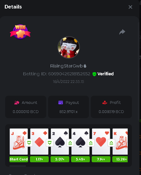 RisingStarGws Posted April 16, 2022 Share Posted April 16, 2022  BC.Game berkomitmen untuk menghadirkan game yang terbukti adil untuk para pemain mereka dan sejalan dengan komitmen mereka, mereka baru-baru ini meluncurkan Hi-Lo! Tidak diragukan lagi ini adalah salah satu permainan kartu dan kasino yang sangat populer di dunia. Mungkin tidak salah untuk mengatakan bahwa ini adalah pengantar yang patut dicontoh ke dunia kartu yang menarik. Banyak penggemar taruhan dari seluruh dunia menikmati permainan ini karena kesederhanaan dan koherensi Hi-Lo! Dalam postingan ini, kita akan melihat sekilas apa yang membuat Hi-Lo begitu menarik dan panduan cara memainkan game ini secara langsung di BC.Game. Dasar-dasar: Pada dasarnya Hi-Lo di BC Game adalah permainan pemain tunggal online tentang memprediksi apakah nomor kartu berikutnya akan 'lebih tinggi atau sama'(Hi) ATAU 'lebih rendah atau sama'(Lo) ke kartu dasar – kartu main utama Anda di setiap putaran. Ada juga opsi 'Lewati' yang tersedia. Meskipun ini adalah permainan yang cukup mudah tetapi alasan utama permainan ini disukai oleh banyak orang adalah karena permainan ini membuat kegembiraan tetap tinggi dengan membuat pemain terus menebak-nebak di setiap langkah, memprediksi dan menempatkan taruhan secara strategis dan mengumpulkan pembayaran besar! Misalnya: jika Anda memiliki 8 kartu ke atas, maka pembayaran rendah akan relatif rendah karena Anda dapat menang dengan banyak kartu (2, 3, 4, dan seterusnya). Sedangkan pembayaran untuk kartu 'tinggi' akan cukup bagus karena Anda bisa menang dengan beberapa kartu saja. (9,10,J, dan seterusnya) Di sinilah Anda dapat menggunakan strategi Hi-Lo yang bagus dan menghasilkan pembayaran yang lebih besar! Cara Bermain :  Klik 'Taruhan' untuk memulai permainan dan mendapatkan kartu pertama Anda. Sekarang Anda harus menebak apakah kartu berikutnya 'lebih tinggi atau sama' atau 'lebih rendah atau sama' dari kartu yang ditampilkan. Di sini Anda juga dapat memilih opsi 'Lewati'. Jika tebakan Anda benar, Anda akan menerima pembayaran yang sesuai. Pada titik ini Anda dapat memilih untuk mengklaim kemenangan ini, menguangkan dan menghentikan putaran ini atau melanjutkan putaran ini dengan menebak kartu berikutnya. Semakin banyak kartu yang Anda tebak, semakin tinggi peluang pembayaran yang lebih besar! Urutan kartunya adalah sebagai berikut: Ace adalah kartu terendah & King adalah kartu tertinggi. Tertinggi ke Terendah: K-Q-J-10-9-8-7-6-5-4-3-2-A Tolong dicatat: Opsi 'sama' dalam taruhan 'Lebih tinggi atau sama'/ 'Lebih rendah atau sama' adalah karena permainan dimainkan dengan jumlah tumpukan kartu yang tidak terbatas. Akibatnya, kartu serupa dapat ditarik dalam barisan seri. Jika kartu yang sama ditarik lagi (kecuali Ace atau King), maka memilih 'Lebih Tinggi' atau 'Lebih Rendah' keduanya akan menjadi taruhan yang menang! Namun perlu disebutkan bahwa pembayaran dapat sangat berbeda karena tergantung pada apakah kartu berikutnya yang Anda pilih ada dalam pilihan. Lihat gambar di bawah ini: Alih-alih memiliki 'Lebih tinggi atau sama' dan 'Lebih rendah atau sama' yang biasa; dua opsi sekarang hanya Tinggi dan Sama (karena kartunya adalah Raja). Untuk Aces dan Kings, Anda selalu melihat dua opsi: Lebih Tinggi / Lebih Rendah dan pilihan lainnya akan 'Sama' Karena Ace dan King adalah kartu pertama dan terakhir yaitu tertinggi dan terendah dalam dirinya sendiri maka jika kartu ini ditarik, Anda harus pilih opsi Lebih Tinggi/Bawah ATAU Sama. Ada juga opsi lewati. Anda dapat memilih opsi Lewati sebelum atau selama bertaruh. Anda dapat melewati beberapa kali. Harap diperhatikan: Jika Anda melewatkan kartu setelah memasang taruhan (melihat kartu sudah ditampilkan), kartu berikutnya setelah melewatkan didasarkan pada kartu yang Anda lewati dan bukan pada kartu sebelumnya! Tidak seperti game Hi-Lo biasa dengan hanya 52 peluang unik untuk menang; di Hi-Lo di Game BC Anda mendapatkan probabilitas tinggi untuk mendapatkan banyak Raja atau As secara berurutan karena kami menggunakan beberapa tumpukan kartu online! Itu semua tentang Hi-Lo! Apakah Anda seorang ahli atau pemula di permainan kasino, permainan ini pasti akan membuat Anda senang dengan pembelajarannya yang mudah dan pembayaran yang menarik! Spoiler   https://hash.game/sd/?sd=10IL49LLLDYPLF    Link to comment Share on other sites More sharing options...