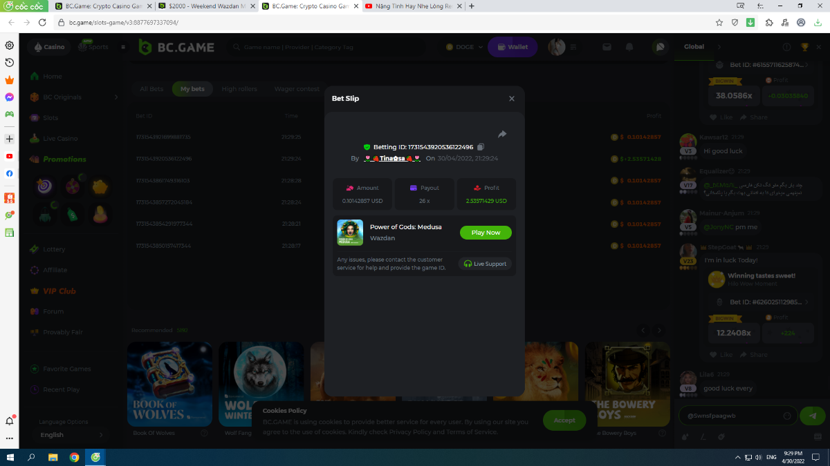 BCGame_POP Posted April 29, 2022 Share Posted April 29, 2022  $2k Wazdan Weekend Multiplier Battle We are hosting this exclusive event for our slot players on the platform for the weekend. Get the best possible multiplier on the highly acclaimed Wazdan Games listed below. All eligible participants will get the prize, hop in your bets within the next 72 hours. Eligible Games: Win the highest multiplier on the Wazdan games listed below 1. Power of Gods: Medusa 2. Jelly Reels 3. Hot Slot 777 Crown The highest multiplier reached in each game will be added together and counted as total points. Bonus buys are allowed. If the player submits multiple winning entries for the same game, the entry with the highest multiplier will be valid. Minimum VIP Tier Must be VIP04 or higher in order to enter this event. Minimum Payout Minimum payout to qualify is 10x (in any game) for a valid entry.   Minimum Bet Size Power of Gods: Medusa - $0.1 Jelly Reels - $0.1 Hot Slot 777 Crown - $0.2 Eligible Coins All cryptocurrencies are eligible (excepting JB, and BCL). Free Play Mode is not valid for this event.                                                                                                                               Prize Pool & Reward Breakdown The winners will win a share of the prize pool based on the detailed ranking below. All other participants who complete all minimum requirements will receive a 35% share of the total prize.    How to Enter Access the game to select your Bet ID, click on the Share icon (↷) and then Copy link. Return to the topic, paste the link in the field "Reply to this topic..." E.g.: https://bc.game/sd/?sd=10JHVKPTK0BIFN In the same post, upload a screenshot of your win by clicking the game ID WITH VIEW IN USD mode ENABLED (accessible at the bottom of dropdown menu for your wallet up top, and Submit Reply. Done! This way, we can ensure that your bet indeed met the minimum requirement at the time of placing it:      https://bc.game/sd/?sd=10JHVKPTK0BIFN Additional Rules: Please combine all of your hits together in a SINGLE post. Edit your existing post for additional hits, don't create a new post. Bets must be posted within 24 hours of placing bet in order to keep things fair for everyone. Bets must be made during the specified time window stated above. This thread will lock automatically when the time period is over. One (1) entry per household. Anyone found attempting to win multiple prizes will be disqualified from this challenge as well as all future challenges. Failure to follow instructions will result in your submission being null and void. By entering this challenge, you acknowledge that BC.Game has the final decision on results and placement. Payouts will be made within 48 hours of challenge completion. Prizes will be paid out in BCD.                                                                          Link to comment Share on other sites More sharing options...