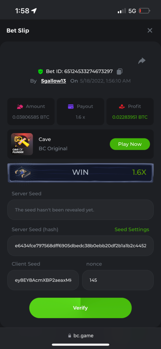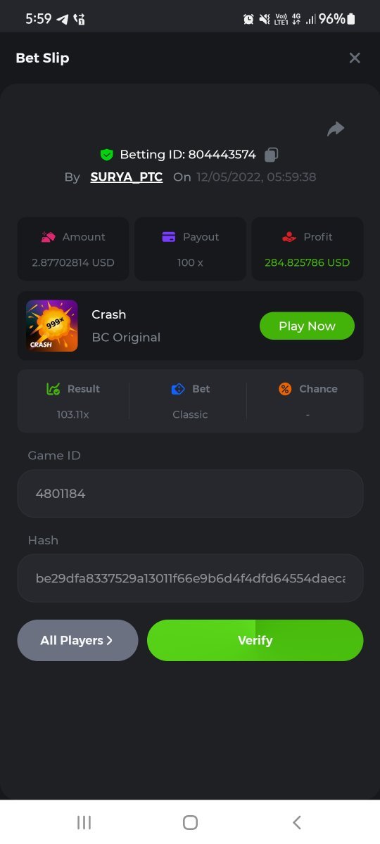 Bet just for low payout on crash but suddenly network loss and when my my phone network come it show i am win on 100x because crash go above 100x and that's my wow accident win moment152499697_100xhttps---bc.game-sd--sd10KBXXRPVQBPCJ.thumb.jpg.fb90305e1b94019de793145547720645.jpg