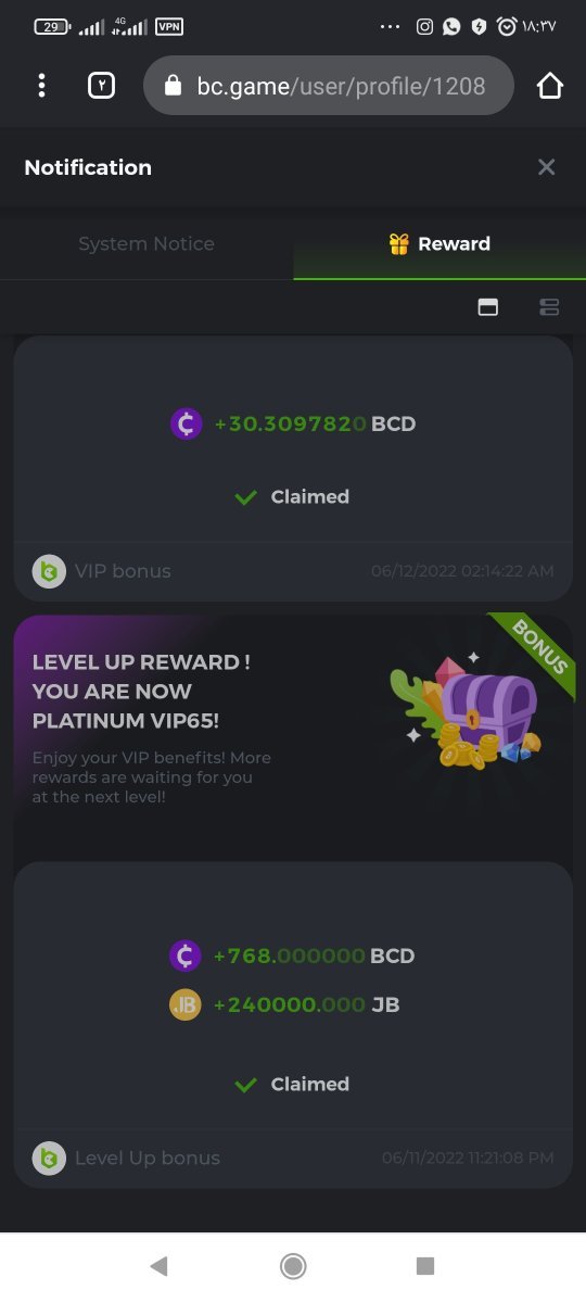 Lvl up. Started at 2019 , one of old veterans, also im done 10 medals https://bc.game/user/profile/676718